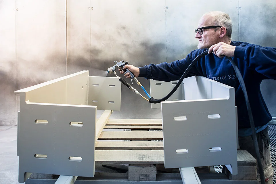 In unserer modernen Lackierhalle bearbeiten und veredeln wir problemlos Werkstücke mit einer Länge von 9 Metern und einer Breite von 5 Metern mittels neuester Verfahrensweisen. Dies garantiert ein optimales Ergebnis bei minimaler Umweltbelastung.